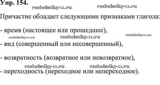 Готовая домашняя работа с ответами по Русскому языку за 7 класс Быстрова, Кибирева, Гостева, Воителева Учебник Инновационная школа Часть 1, 2 Русское слово 2019 ФГОС - Упражнения 154