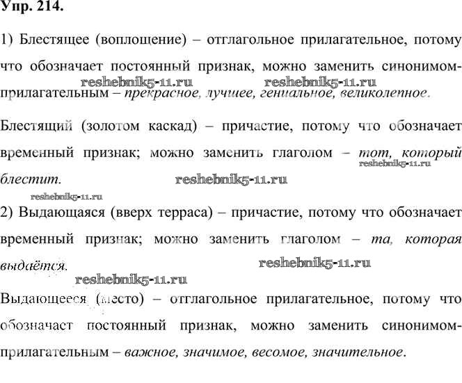 Готовая домашняя работа с ответами по Русскому языку за 7 класс Быстрова, Кибирева, Гостева, Воителева Учебник Инновационная школа Часть 1, 2 Русское слово 2019 ФГОС - Упражнения 214