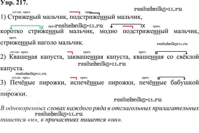 Готовая домашняя работа с ответами по Русскому языку за 7 класс Быстрова, Кибирева, Гостева, Воителева Учебник Инновационная школа Часть 1, 2 Русское слово 2019 ФГОС - Упражнения 217