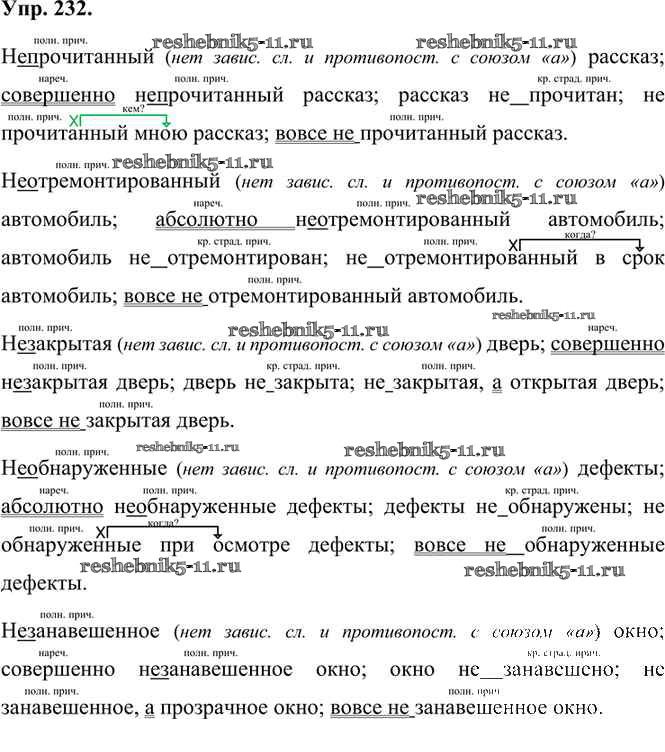 Готовая домашняя работа с ответами по Русскому языку за 7 класс Быстрова, Кибирева, Гостева, Воителева Учебник Инновационная школа Часть 1, 2 Русское слово 2019 ФГОС - Упражнения 232