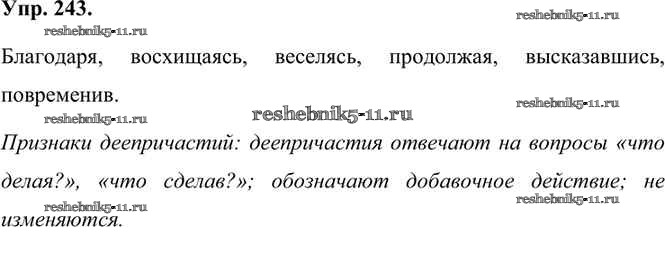 Готовая домашняя работа с ответами по Русскому языку за 7 класс Быстрова, Кибирева, Гостева, Воителева Учебник Инновационная школа Часть 1, 2 Русское слово 2019 ФГОС - Упражнения 243