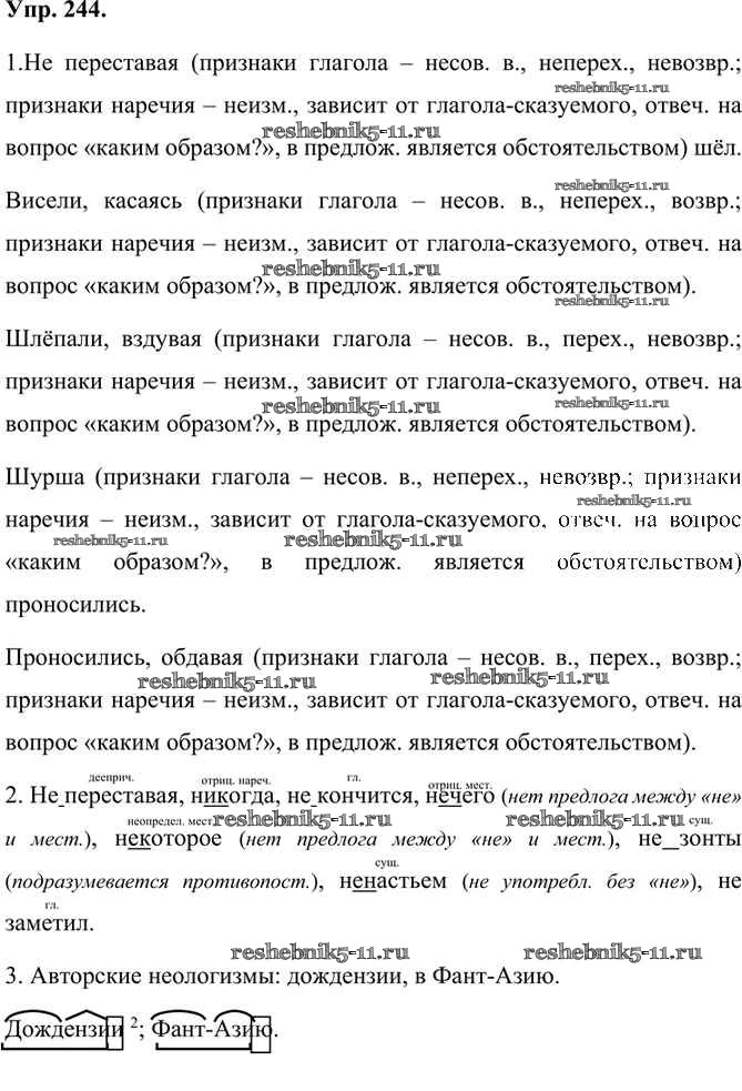 Готовая домашняя работа с ответами по Русскому языку за 7 класс Быстрова, Кибирева, Гостева, Воителева Учебник Инновационная школа Часть 1, 2 Русское слово 2019 ФГОС - Упражнения 244