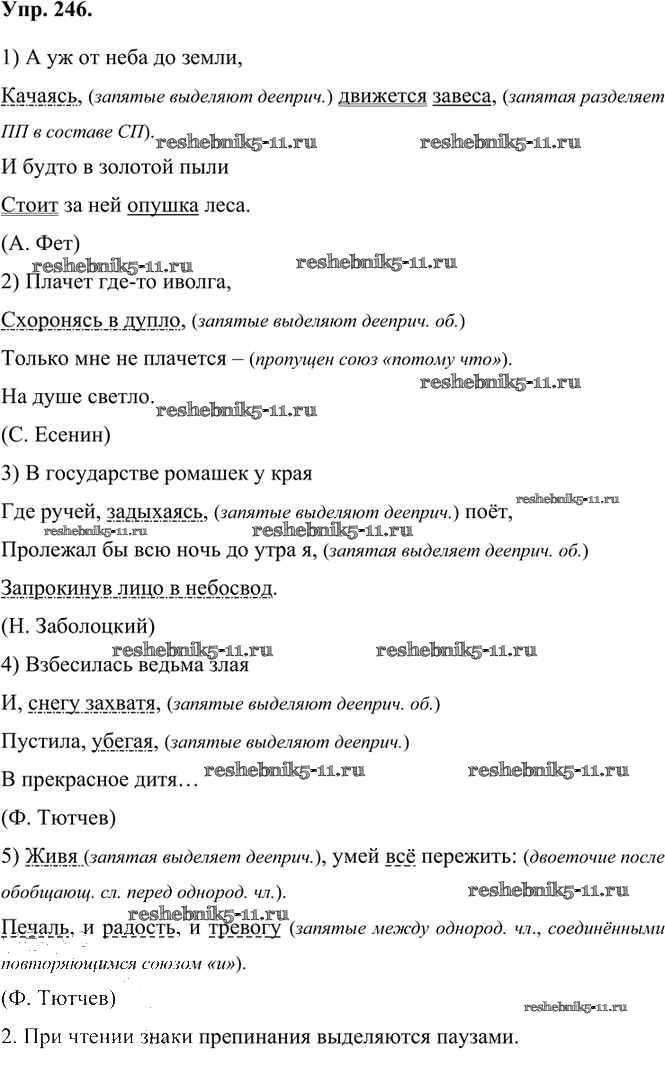Готовая домашняя работа с ответами по Русскому языку за 7 класс Быстрова, Кибирева, Гостева, Воителева Учебник Инновационная школа Часть 1, 2 Русское слово 2019 ФГОС - Упражнения 246