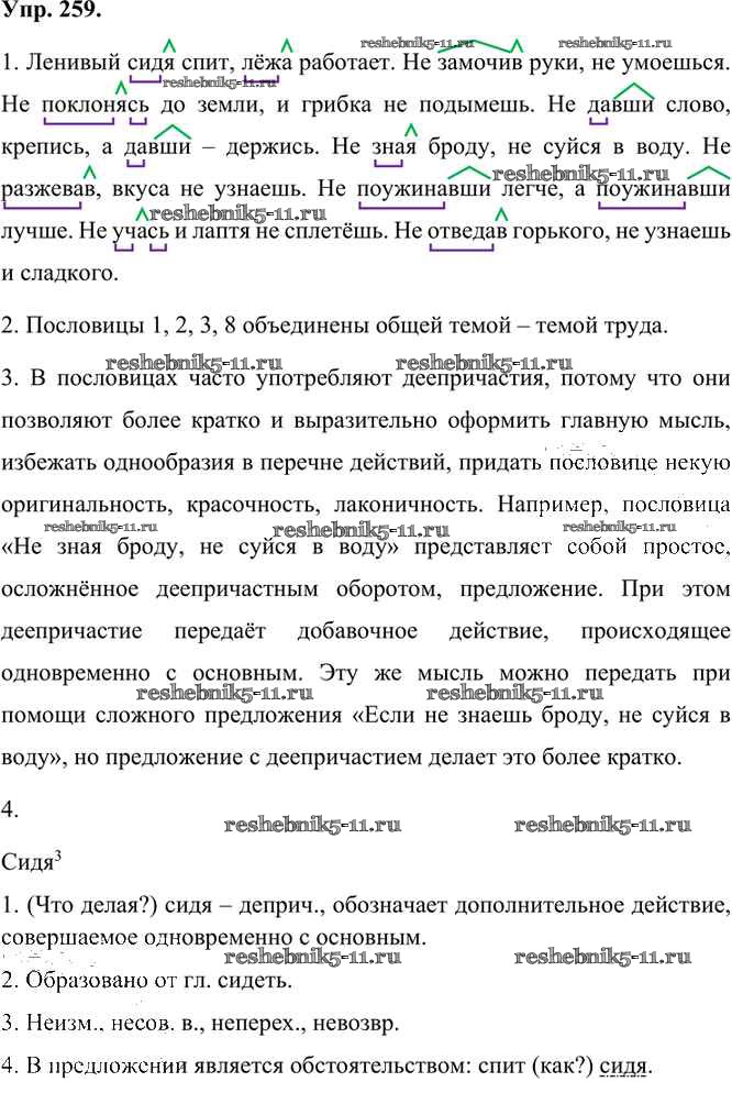 Готовая домашняя работа с ответами по Русскому языку за 7 класс Быстрова, Кибирева, Гостева, Воителева Учебник Инновационная школа Часть 1, 2 Русское слово 2019 ФГОС - Упражнения 259