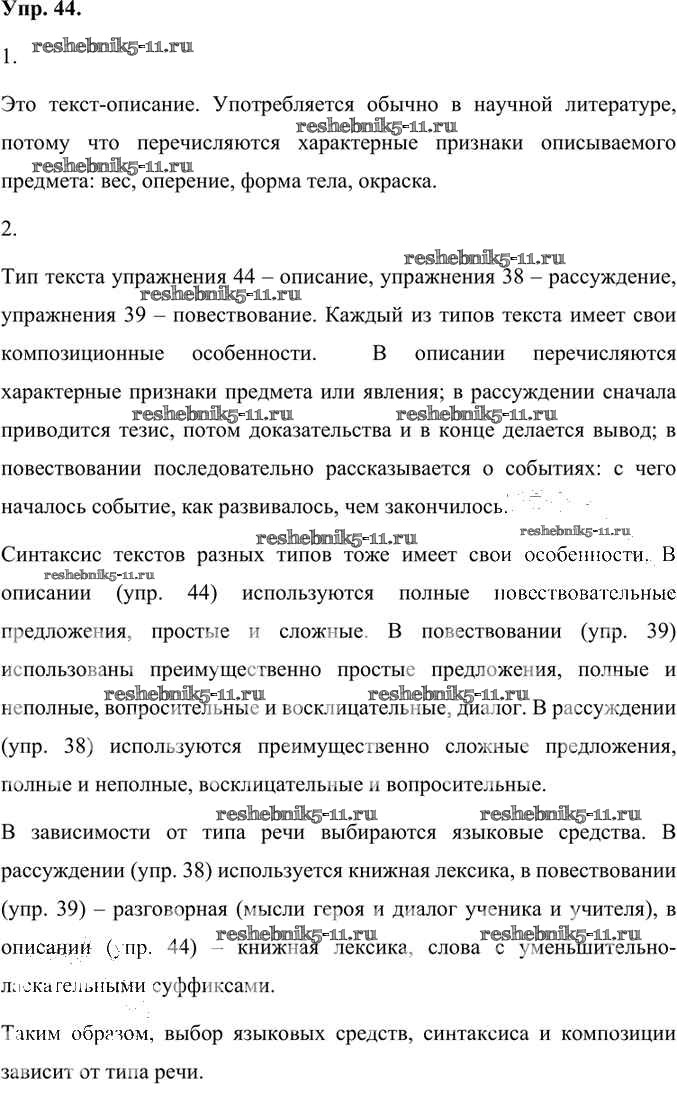 Готовая домашняя работа с ответами по Русскому языку за 7 класс Быстрова, Кибирева, Гостева, Воителева Учебник Инновационная школа Часть 1, 2 Русское слово 2019 ФГОС - Упражнения 44