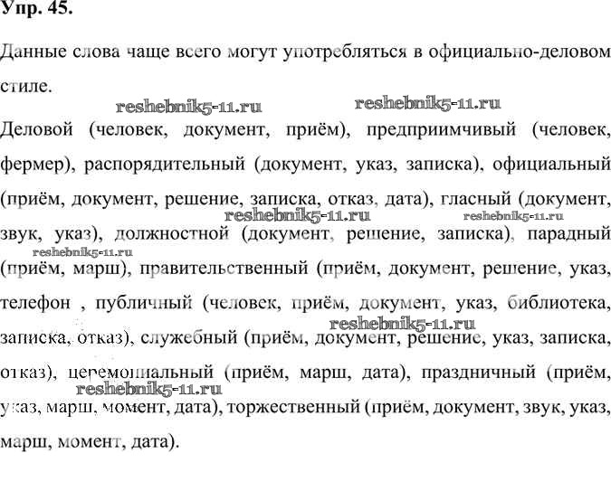 Русский язык за 7 класс Быстрова Учебник Инновационная школа Русское слово упражнение 45