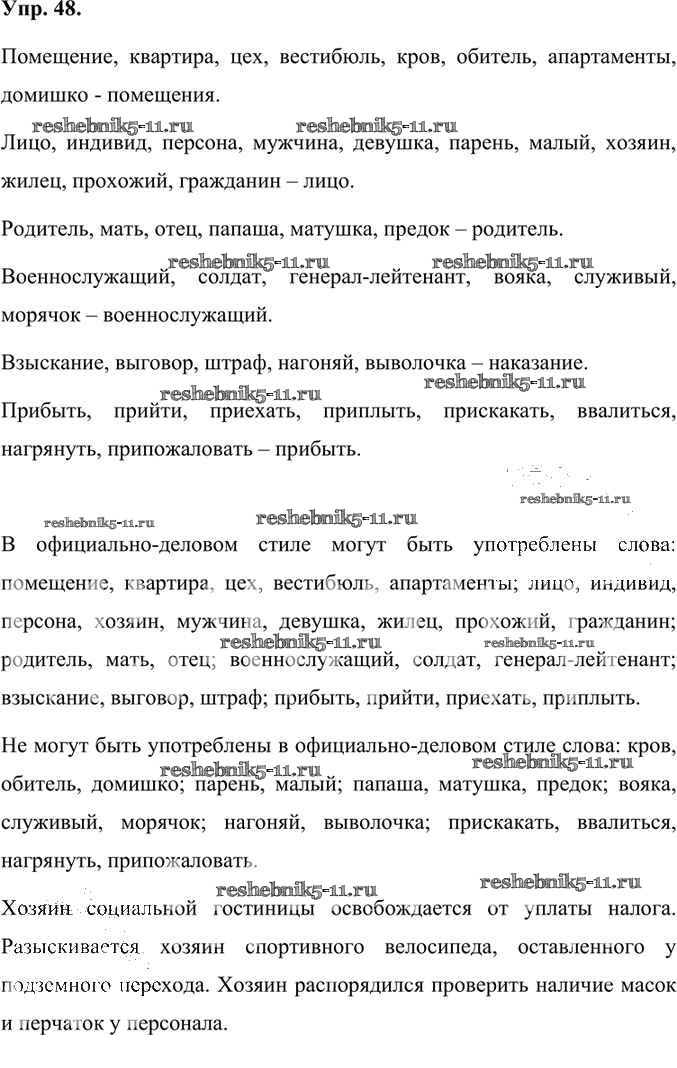 Готовая домашняя работа с ответами по Русскому языку за 7 класс Быстрова, Кибирева, Гостева, Воителева Учебник Инновационная школа Часть 1, 2 Русское слово 2019 ФГОС - Упражнения 48
