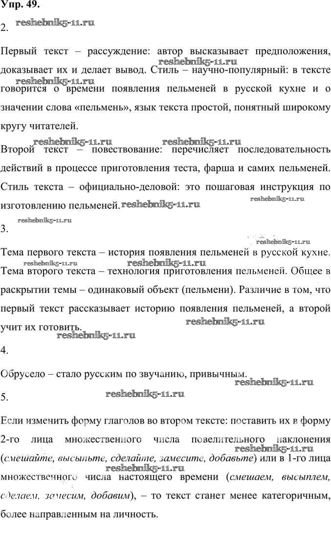 Готовая домашняя работа с ответами по Русскому языку за 7 класс Быстрова, Кибирева, Гостева, Воителева Учебник Инновационная школа Часть 1, 2 Русское слово 2019 ФГОС - Упражнения 49