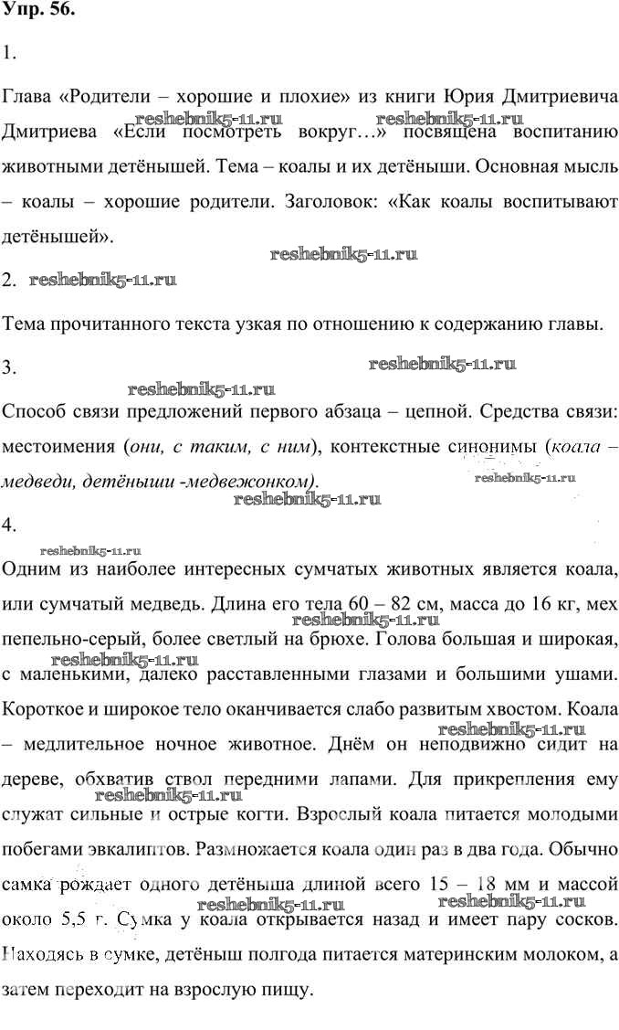 Готовая домашняя работа с ответами по Русскому языку за 7 класс Быстрова, Кибирева, Гостева, Воителева Учебник Инновационная школа Часть 1, 2 Русское слово 2019 ФГОС - Упражнения 56