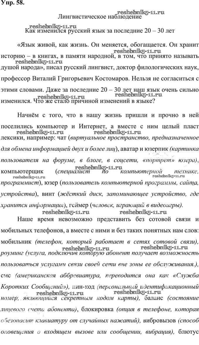 Русский язык за 7 класс Быстрова Учебник Инновационная школа Русское слово упражнение 58