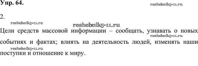 Готовая домашняя работа с ответами по Русскому языку за 7 класс Быстрова, Кибирева, Гостева, Воителева Учебник Инновационная школа Часть 1, 2 Русское слово 2019 ФГОС - Упражнения 64
