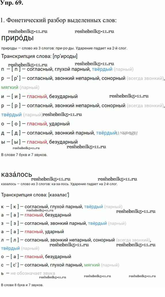 Готовая домашняя работа с ответами по Русскому языку за 7 класс Быстрова, Кибирева, Гостева, Воителева Учебник Инновационная школа Часть 1, 2 Русское слово 2019 ФГОС - Упражнения 69