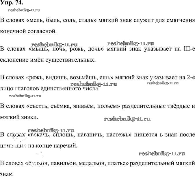 Готовая домашняя работа с ответами по Русскому языку за 7 класс Быстрова, Кибирева, Гостева, Воителева Учебник Инновационная школа Часть 1, 2 Русское слово 2019 ФГОС - Упражнения 74