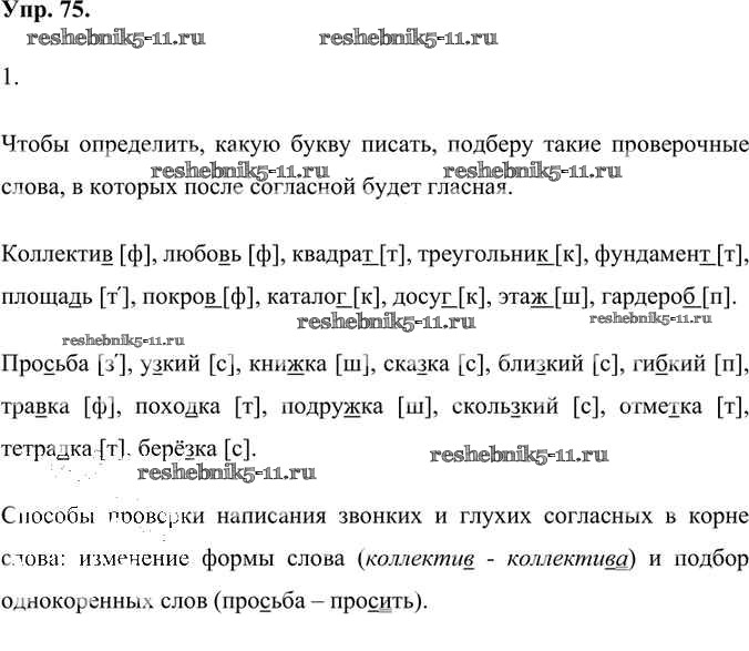 Готовая домашняя работа с ответами по Русскому языку за 7 класс Быстрова, Кибирева, Гостева, Воителева Учебник Инновационная школа Часть 1, 2 Русское слово 2019 ФГОС - Упражнения 75