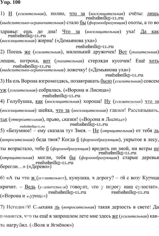 Готовая домашняя работа с ответами по Русскому языку за 7 класс Быстрова, Кибирева, Гостева, Воителева Учебник Инновационная школа Часть 1, 2 Русское слово 2019 ФГОС - Упражнения 100