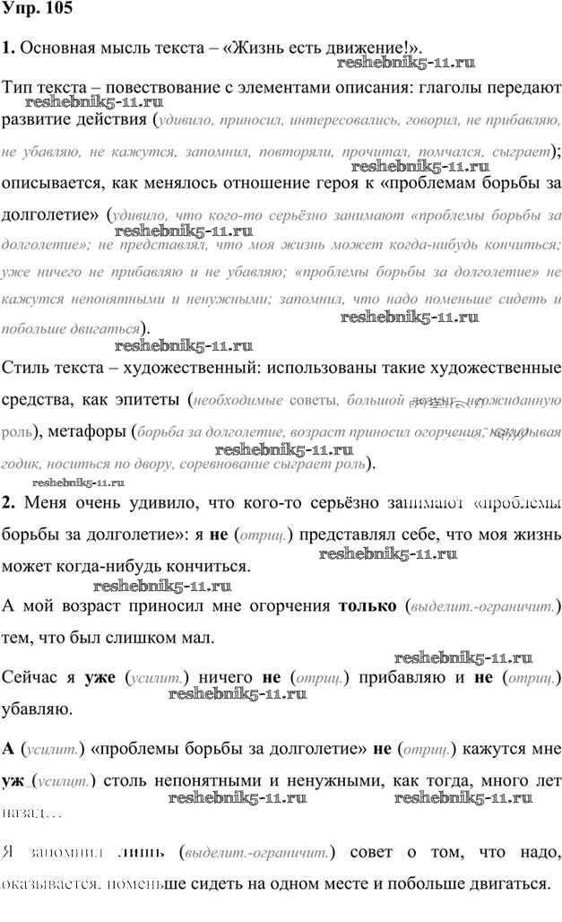 Готовая домашняя работа с ответами по Русскому языку за 7 класс Быстрова, Кибирева, Гостева, Воителева Учебник Инновационная школа Часть 1, 2 Русское слово 2019 ФГОС - Упражнения 105