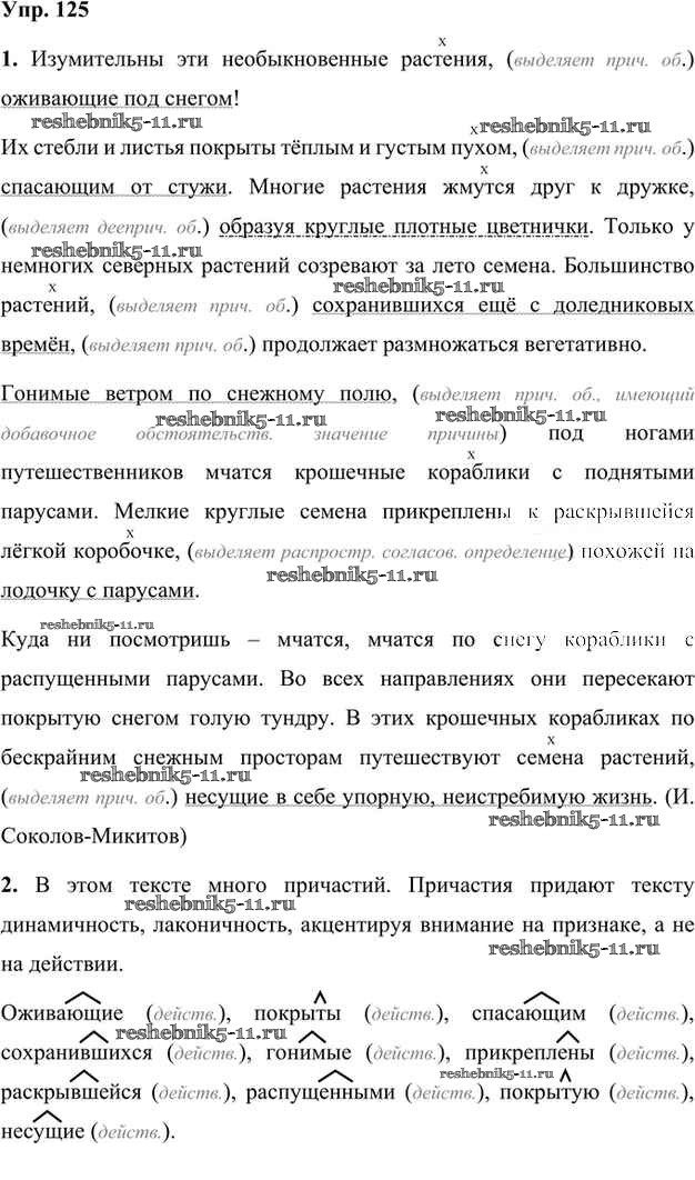 Готовая домашняя работа с ответами по Русскому языку за 7 класс Быстрова, Кибирева, Гостева, Воителева Учебник Инновационная школа Часть 1, 2 Русское слово 2019 ФГОС - Упражнения 125