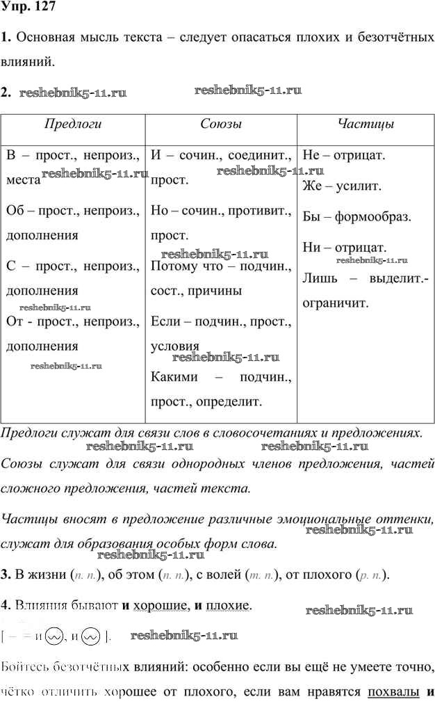 Готовая домашняя работа с ответами по Русскому языку за 7 класс Быстрова, Кибирева, Гостева, Воителева Учебник Инновационная школа Часть 1, 2 Русское слово 2019 ФГОС - Упражнения 127