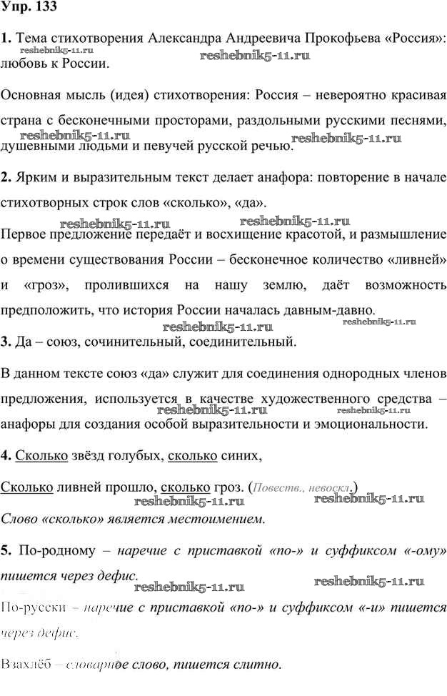Готовая домашняя работа с ответами по Русскому языку за 7 класс Быстрова, Кибирева, Гостева, Воителева Учебник Инновационная школа Часть 1, 2 Русское слово 2019 ФГОС - Упражнения 133