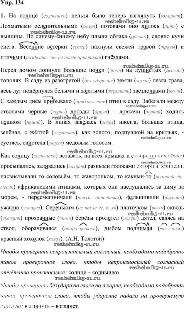Готовая домашняя работа с ответами по Русскому языку за 7 класс Быстрова, Кибирева, Гостева, Воителева Учебник Инновационная школа Часть 1, 2 Русское слово 2019 ФГОС - Упражнения 134