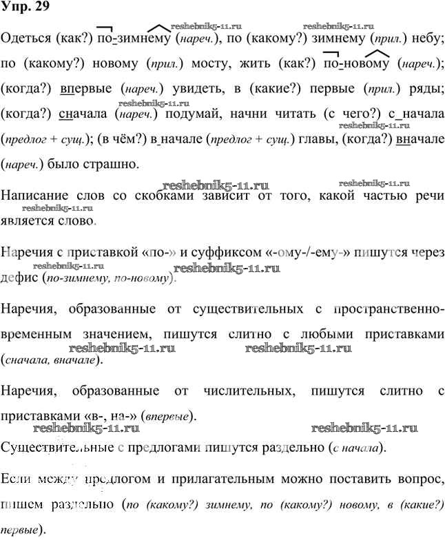 Готовая домашняя работа с ответами по Русскому языку за 7 класс Быстрова, Кибирева, Гостева, Воителева Учебник Инновационная школа Часть 1, 2 Русское слово 2019 ФГОС - Упражнения 29