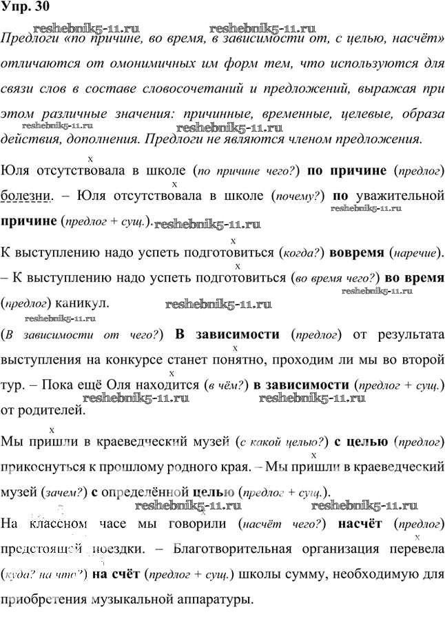 Готовая домашняя работа с ответами по Русскому языку за 7 класс Быстрова, Кибирева, Гостева, Воителева Учебник Инновационная школа Часть 1, 2 Русское слово 2019 ФГОС - Упражнения 30