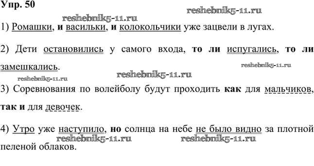 Готовая домашняя работа с ответами по Русскому языку за 7 класс Быстрова, Кибирева, Гостева, Воителева Учебник Инновационная школа Часть 1, 2 Русское слово 2019 ФГОС - Упражнения 50