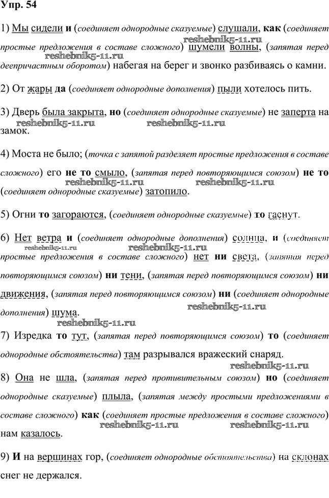 Готовая домашняя работа с ответами по Русскому языку за 7 класс Быстрова, Кибирева, Гостева, Воителева Учебник Инновационная школа Часть 1, 2 Русское слово 2019 ФГОС - Упражнения 54