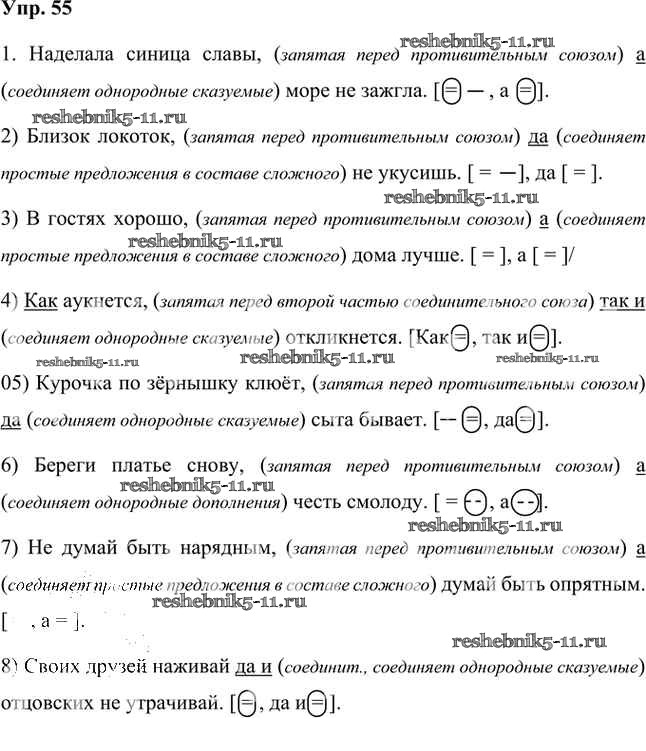Готовая домашняя работа с ответами по Русскому языку за 7 класс Быстрова, Кибирева, Гостева, Воителева Учебник Инновационная школа Часть 1, 2 Русское слово 2019 ФГОС - Упражнения 55