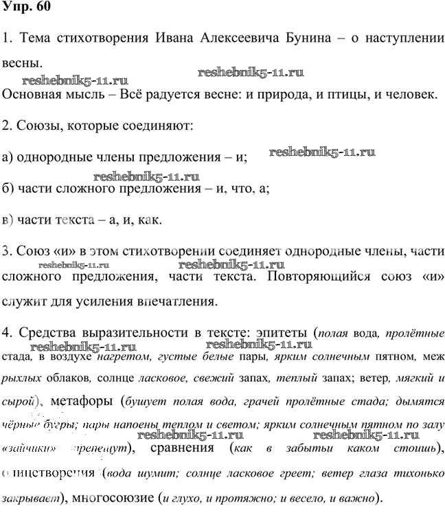 Готовая домашняя работа с ответами по Русскому языку за 7 класс Быстрова, Кибирева, Гостева, Воителева Учебник Инновационная школа Часть 1, 2 Русское слово 2019 ФГОС - Упражнения 60