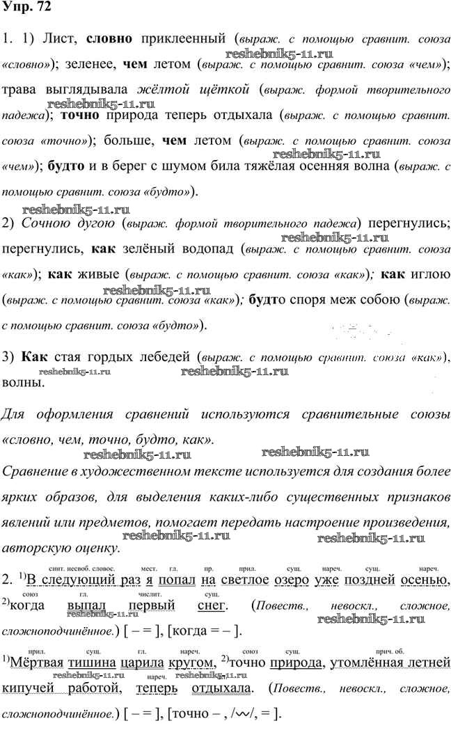 Готовая домашняя работа с ответами по Русскому языку за 7 класс Быстрова, Кибирева, Гостева, Воителева Учебник Инновационная школа Часть 1, 2 Русское слово 2019 ФГОС - Упражнения 72