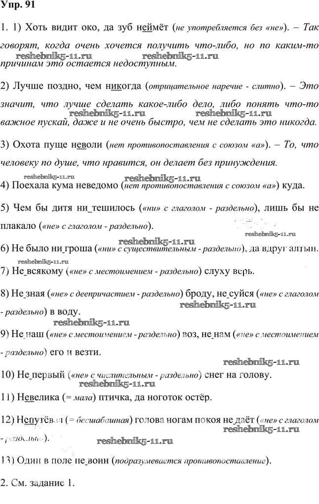Готовая домашняя работа с ответами по Русскому языку за 7 класс Быстрова, Кибирева, Гостева, Воителева Учебник Инновационная школа Часть 1, 2 Русское слово 2019 ФГОС - Упражнения 91