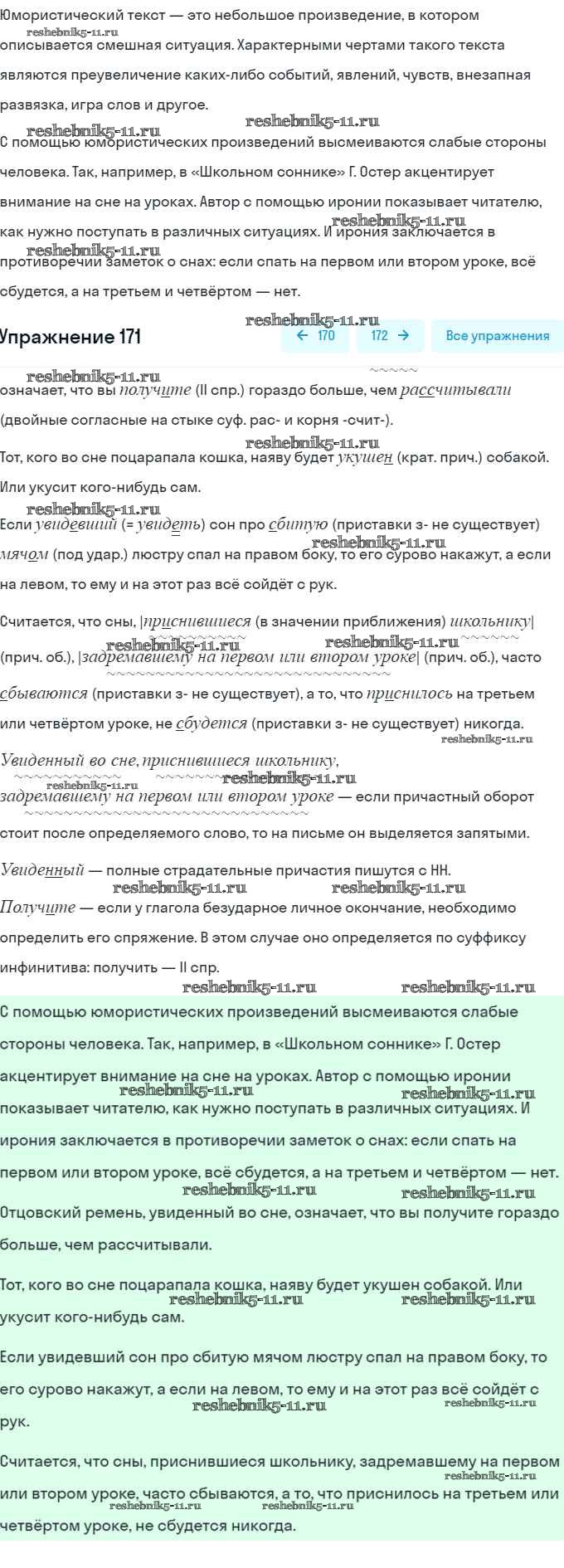 Готовая домашняя работа с ответами по Русскому языку за 7 класс Рыбченкова, Александрова, Загоровская, Нарушевич, Вакурова Учебник Просвещение 2016 ФГОС - Упражнения 171