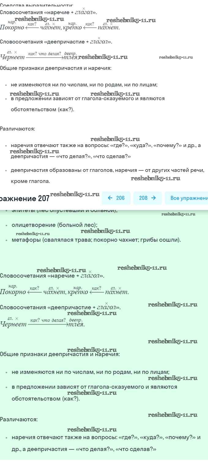 Готовая домашняя работа с ответами по Русскому языку за 7 класс Рыбченкова, Александрова, Загоровская, Нарушевич, Вакурова Учебник Просвещение 2016 ФГОС - Упражнения 207