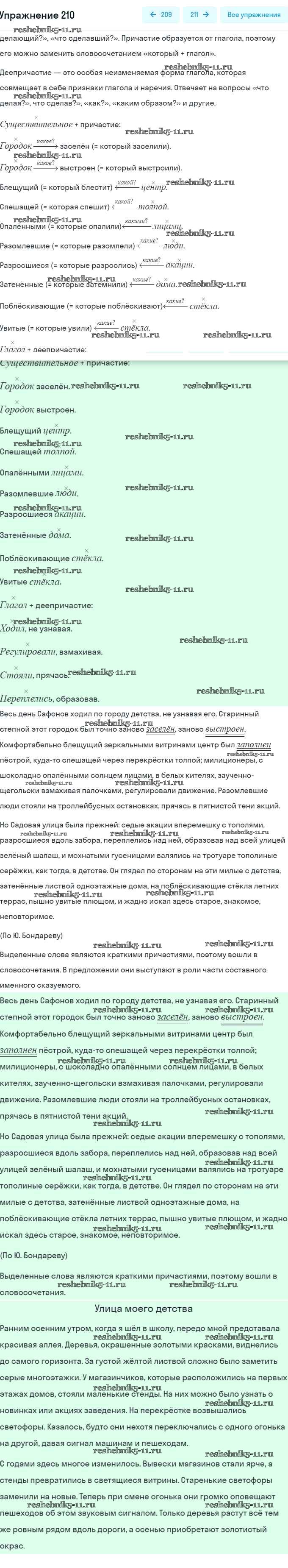 Готовая домашняя работа с ответами по Русскому языку за 7 класс Рыбченкова, Александрова, Загоровская, Нарушевич, Вакурова Учебник Просвещение 2016 ФГОС - Упражнения 210