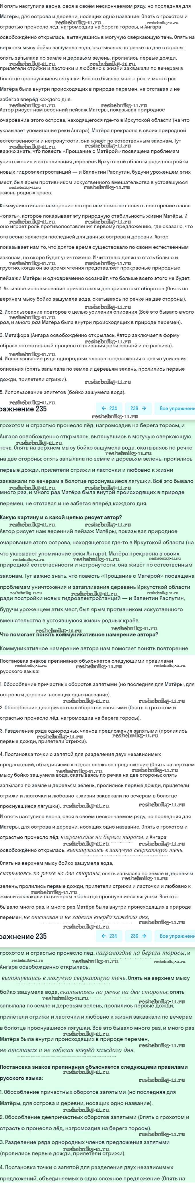 Готовая домашняя работа с ответами по Русскому языку за 7 класс Рыбченкова, Александрова, Загоровская, Нарушевич, Вакурова Учебник Просвещение 2016 ФГОС - Упражнения 235