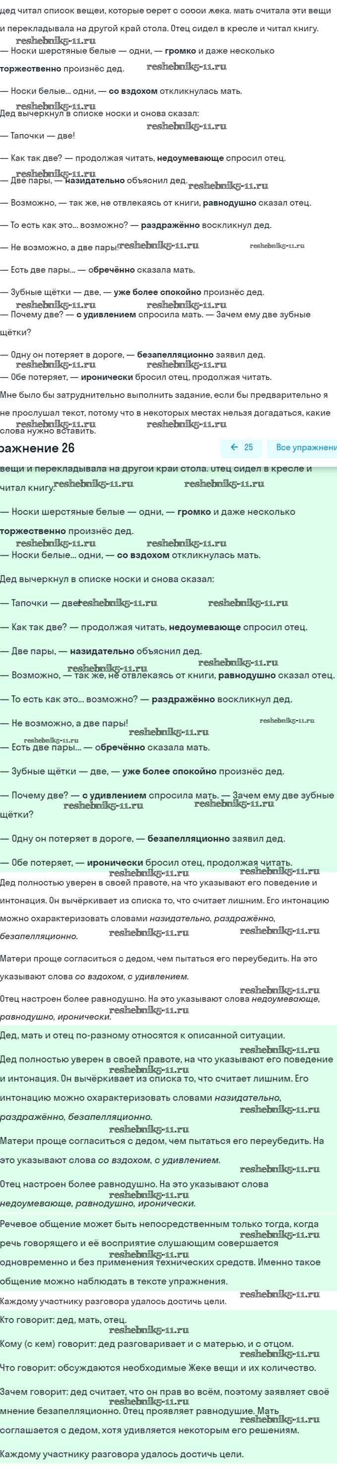 Готовая домашняя работа с ответами по Русскому языку за 7 класс Рыбченкова, Александрова, Загоровская, Нарушевич, Вакурова Учебник Просвещение 2016 ФГОС - Упражнения 26