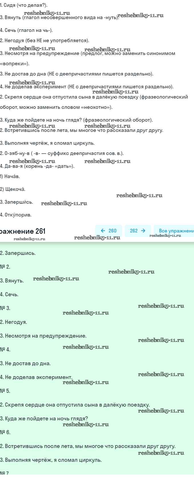 Готовая домашняя работа с ответами по Русскому языку за 7 класс Рыбченкова, Александрова, Загоровская, Нарушевич, Вакурова Учебник Просвещение 2016 ФГОС - Упражнения 261