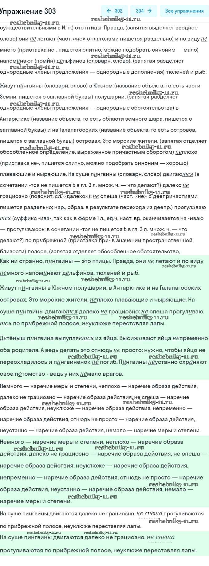 Готовая домашняя работа с ответами по Русскому языку за 7 класс Рыбченкова, Александрова, Загоровская, Нарушевич, Вакурова Учебник Просвещение 2016 ФГОС - Упражнения 303