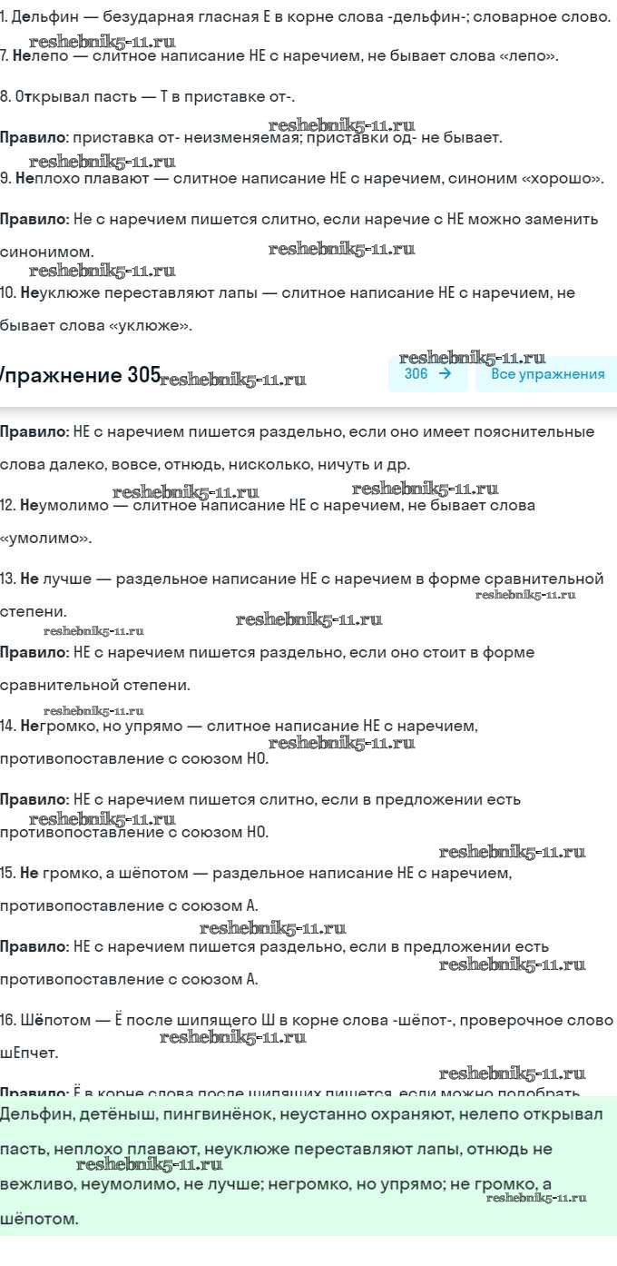 Готовая домашняя работа с ответами по Русскому языку за 7 класс Рыбченкова, Александрова, Загоровская, Нарушевич, Вакурова Учебник Просвещение 2016 ФГОС - Упражнения 305