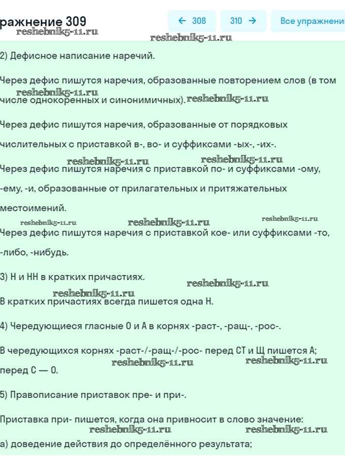Готовая домашняя работа с ответами по Русскому языку за 7 класс Рыбченкова, Александрова, Загоровская, Нарушевич, Вакурова Учебник Просвещение 2016 ФГОС - Упражнения 309