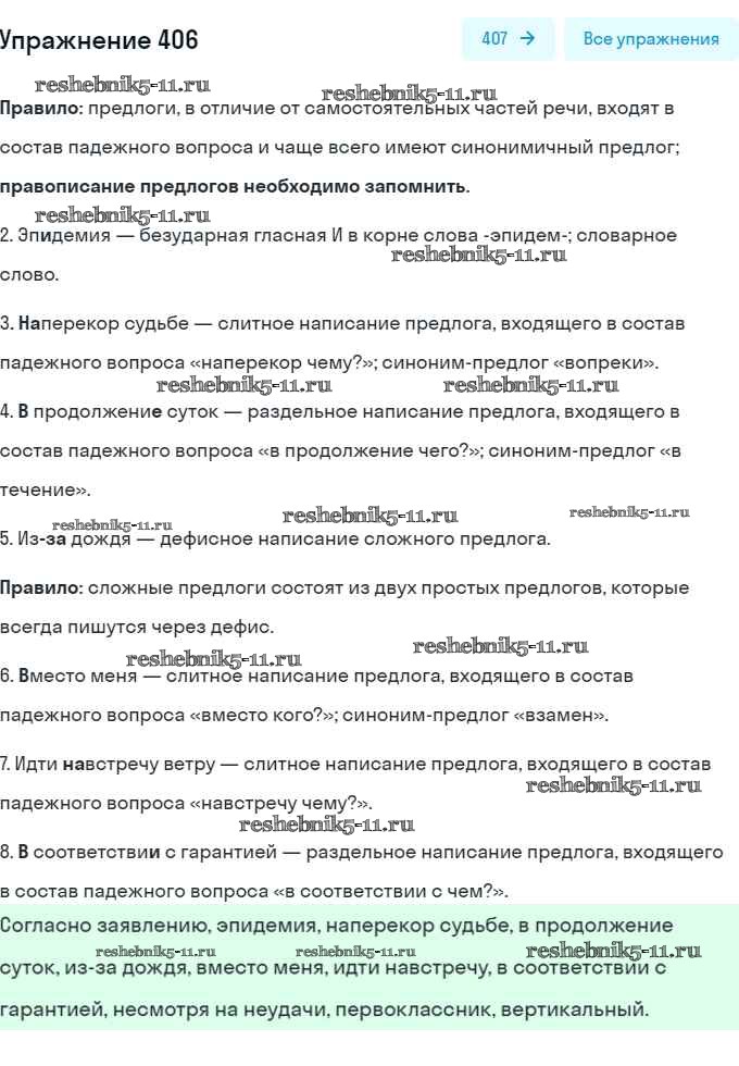 Готовая домашняя работа с ответами по Русскому языку за 7 класс Рыбченкова, Александрова, Загоровская, Нарушевич, Вакурова Учебник Просвещение 2016 ФГОС - Упражнения 406
