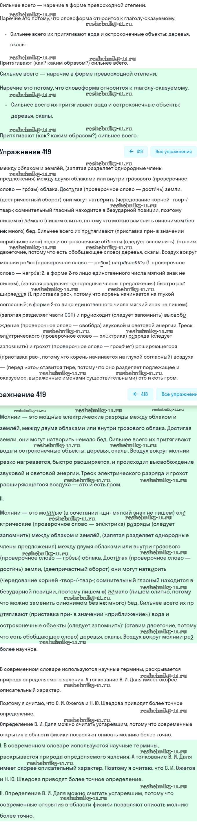 Готовая домашняя работа с ответами по Русскому языку за 7 класс Рыбченкова, Александрова, Загоровская, Нарушевич, Вакурова Учебник Просвещение 2016 ФГОС - Упражнения 419