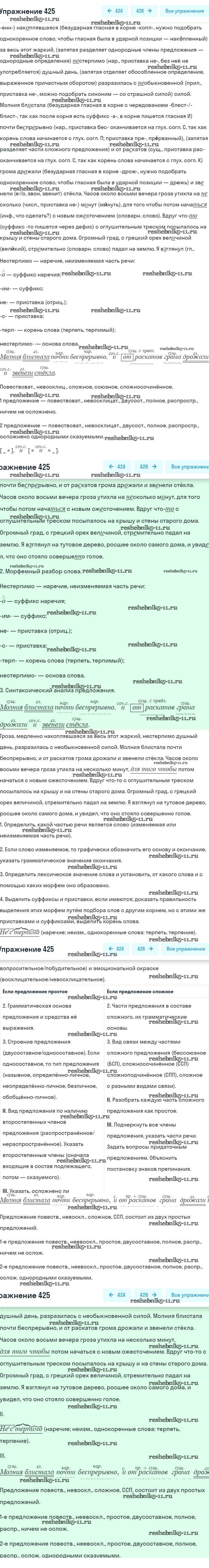 Готовая домашняя работа с ответами по Русскому языку за 7 класс Рыбченкова, Александрова, Загоровская, Нарушевич, Вакурова Учебник Просвещение 2016 ФГОС - Упражнения 425