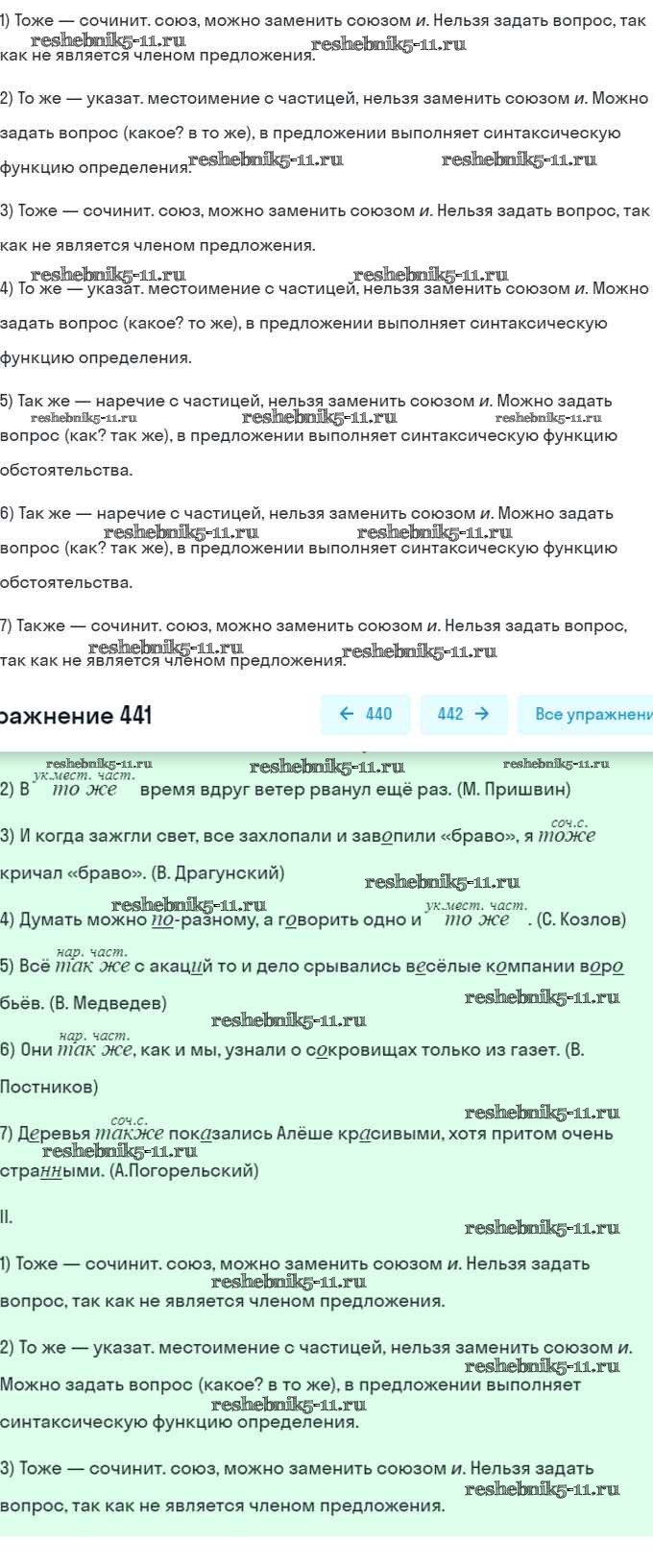 Готовая домашняя работа с ответами по Русскому языку за 7 класс Рыбченкова, Александрова, Загоровская, Нарушевич, Вакурова Учебник Просвещение 2016 ФГОС - Упражнения 441