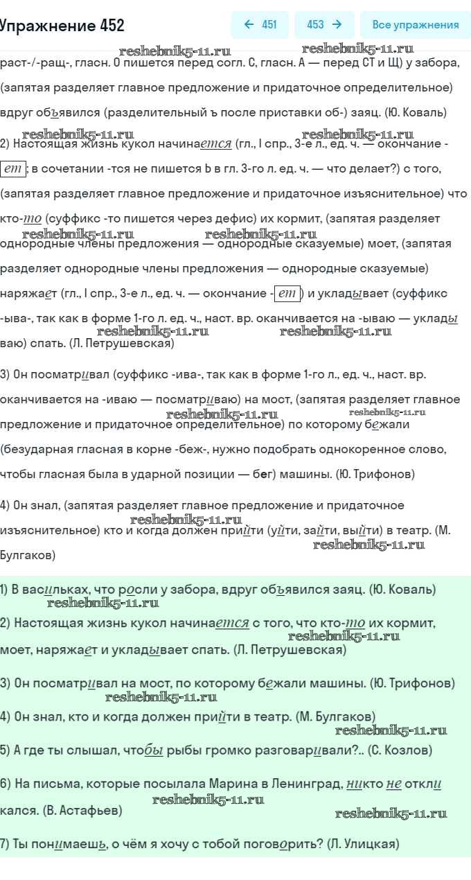 Готовая домашняя работа с ответами по Русскому языку за 7 класс Рыбченкова, Александрова, Загоровская, Нарушевич, Вакурова Учебник Просвещение 2016 ФГОС - Упражнения 452