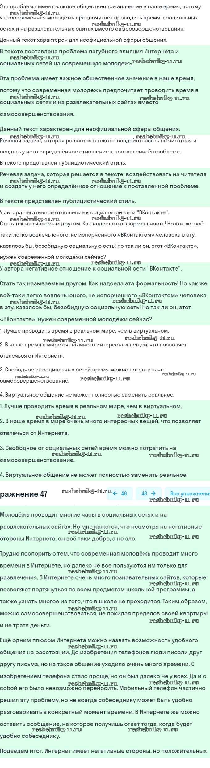 Готовая домашняя работа с ответами по Русскому языку за 7 класс Рыбченкова, Александрова, Загоровская, Нарушевич, Вакурова Учебник Просвещение 2016 ФГОС - Упражнения 47