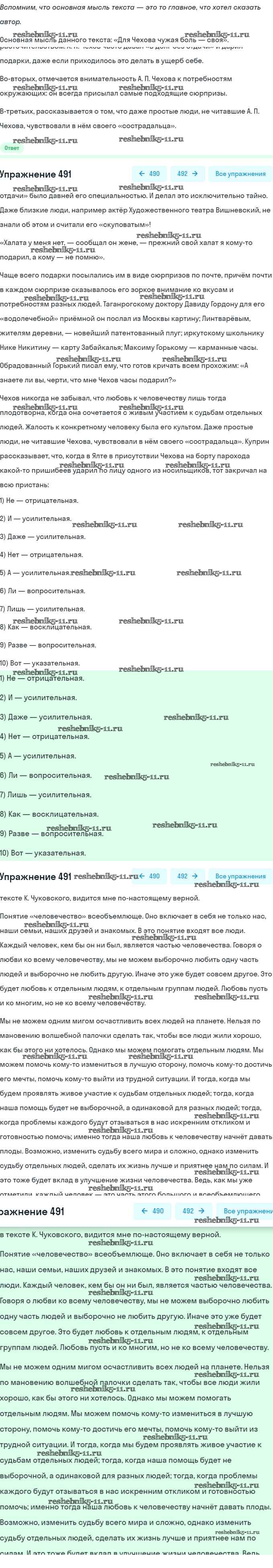 Готовая домашняя работа с ответами по Русскому языку за 7 класс Рыбченкова, Александрова, Загоровская, Нарушевич, Вакурова Учебник Просвещение 2016 ФГОС - Упражнения 491