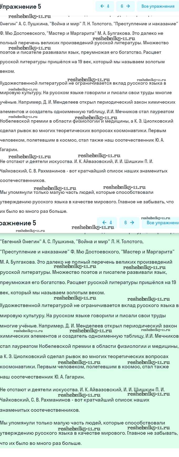 Готовая домашняя работа с ответами по Русскому языку за 7 класс Рыбченкова, Александрова, Загоровская, Нарушевич, Вакурова Учебник Просвещение 2016 ФГОС - Упражнения 5