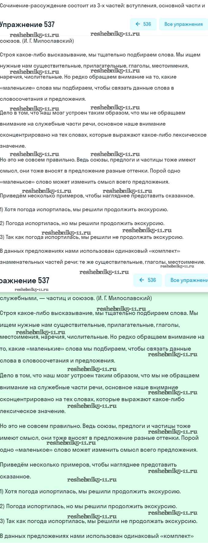 Готовая домашняя работа с ответами по Русскому языку за 7 класс Рыбченкова, Александрова, Загоровская, Нарушевич, Вакурова Учебник Просвещение 2016 ФГОС - Упражнения 537